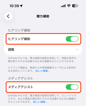 チェックが完了したら、下記のように聴力補助機能を有効化します。