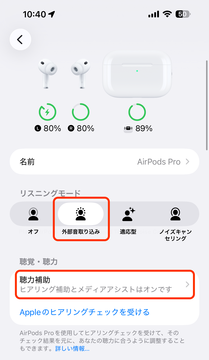 AirPods は「外部音取り込みモード」「会話の強調」「自分の声の増幅」など高度なサウンド処理を実現できる能力を備えています。しかも、一般の補聴器より圧倒的に普及しているため、コストパフォーマンスが非常に高い。