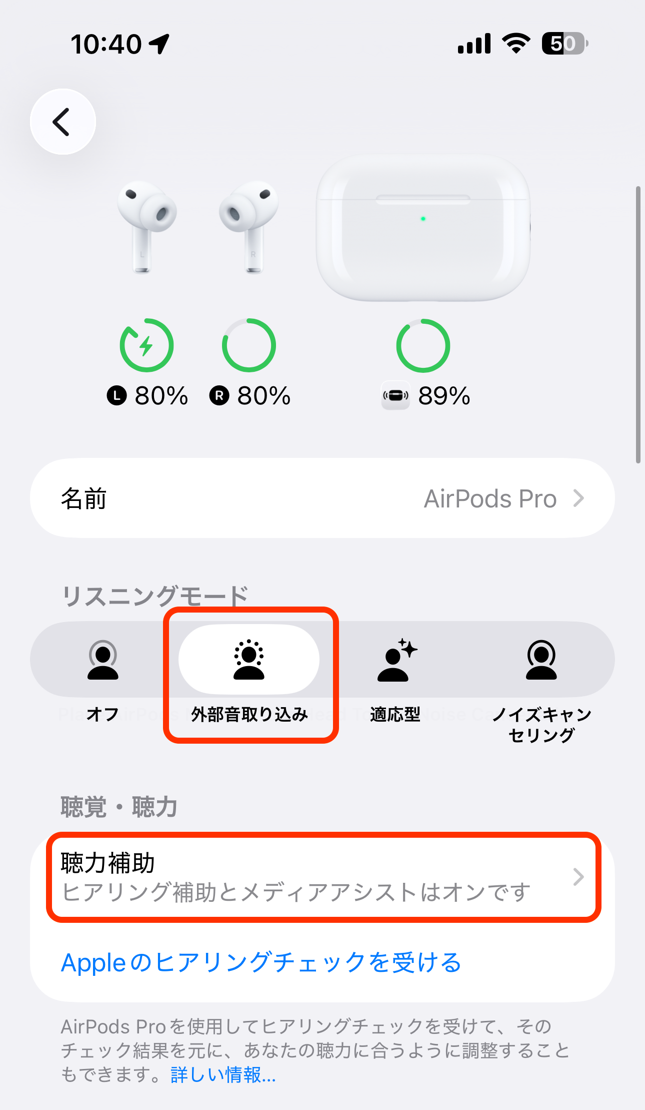 AirPods は「外部音取り込みモード」「会話の強調」「自分の声の増幅」など高度なサウンド処理を実現できる能力を備えています。しかも、一般の補聴器より圧倒的に普及しているため、コストパフォーマンスが非常に高い。